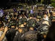 In de loop van de avond sloeg de sfeer om en werd de ME ingeschakeld om de demonstranten weg te krijgen.